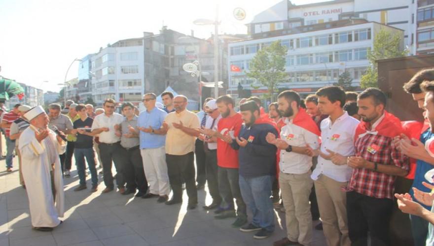 Bolu İl Gençlik Kolları tarafından ikindi namazı sonrası Kadı Camii önünde organize edilen gıyabi cenaze namazına; Bolu Belediye Başkanı Alaaddin Yılmaz, AK Parti Merkez İlçe Başkanı Adil Esen, AK Parti İl Teşkilat Başkanı Zekai Öztürk, İl Yönetim Kurulu Üyesi Sami Erdoğan’ın da arasında yer aldığı yaklaşık 50 kişi katıldı.