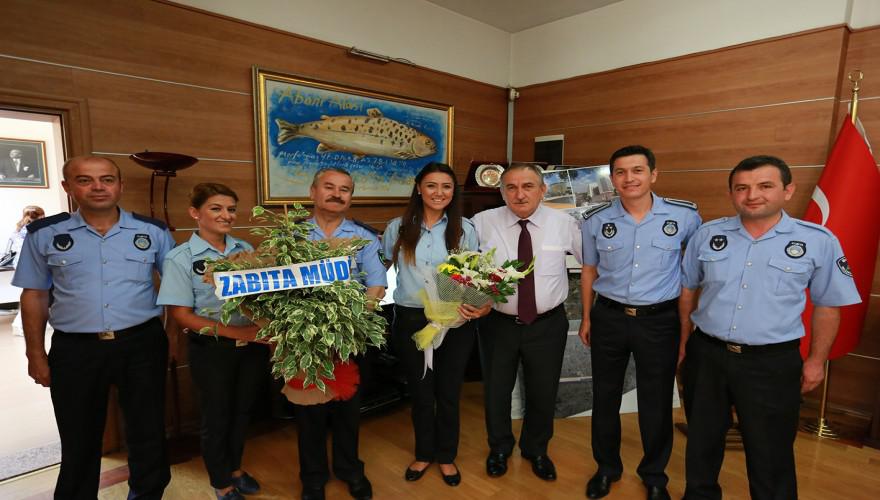 Vali Baruş’un ardından Bolu Belediye Başkanı Alaaddin Yılmaz’ı da makamında ziyaret eden ekibe Başkan Yılmaz çiçek hediye etti ve Zabıta Haftalarını kutlayarak başarılar diledi.