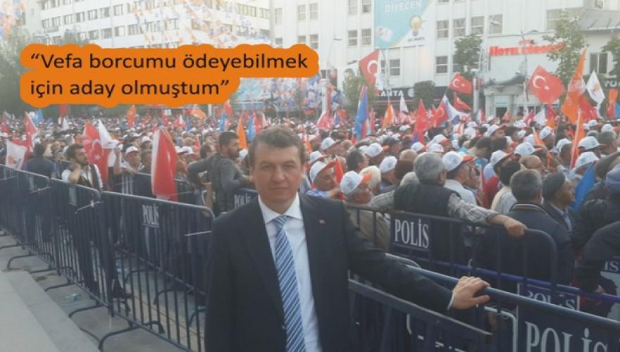 7 Haziran seçimlerinde doğduğum, doyduğum Bolu’ya vefa borcumu ödeyebilmek için aday olmuştum. Aynı zamanda üniversite kenti olan ve yaklaşık 20 bin oy potansiyeli olan bir üniversite çalışanı olarak AK Partinin oy sıkıntısı yaşadığı kitlelerden oy alabileceğimi düşünerek aday olmuştum. Bolu ile ilgili projelerim, Bolu’ya sevdam olduğu için aday olmuştum.