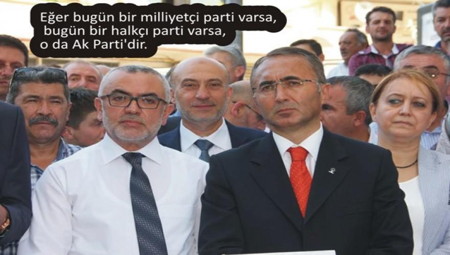 “Hiçbir partiyi dışlamak, hiçbir parti mensubunu da üzmek, gücendirmek istemiyorum. Ama adında halkçı olan partinin halkın değerlerine ne kadar düşman olduğunu, ne kadar bu milletin değerlerinden, inançlarından, geleneklerinden kopuk olduğunu hepiniz biliyorsunuz. Bedavadan milliyetçilik olmaz. Milliyetçiyim diyen insan milletine hizmet etmeye çalışan insandır. Eğer bugün bir milliyetçi parti varsa, bugün bir halkçı parti varsa, Cumhurun, halkın ve milletinin sesini, inancını, yüreğini bir tek ifade eden parti vardır, o da Ak Parti’dir.“