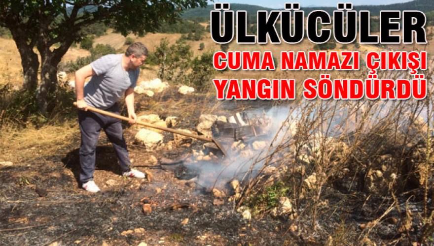 Yangının ormana sıçramaması için büyük çaba sarfeden ülkücü ve köylüler İtfaiyenin olay yerine gelmesiyle yangını tamamen kontrol altına alıp söndürdüler.