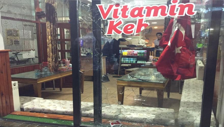 Olay yerinden uzaklaşan 200 kişi cadde üzerinde bulunan kebap satan bir işyerinin camlarını kırdı. İşyerinin camında Türk bayrağı olması gözlerden kaçmadı. Polis ekipleri kentte genmiş güvenlik önlemleri aldı.
