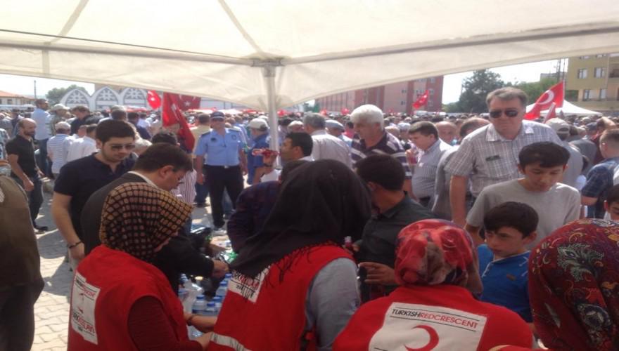 Iğdır’da polis servisine PKK’lı teröristler tarafından düzenlenen saldırıda şehit düşen polis memurunun cenaze töreninde, Türk Kızılayı Bolu Şubesi halka çay, çorba, lokum, soda ve su ikramında bulundu.