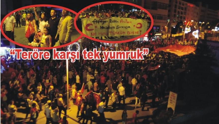 Bolu’da taraftar grupları tarafından düzenlenen “Teröre karşı tek yumruk” yürüyüşüne katılan 5 bin kişi terör örgütü PKK’ya tepki gösterdi. Yürüyüşte son zamanlarda Bolu’da yapılan en coşkulu yürüyüş olarak kayıtlara geçti.