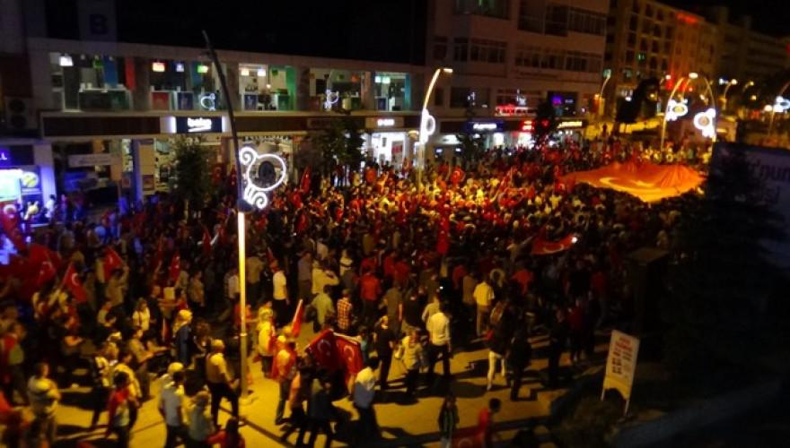Kardelen Meydanı’nda başlayan yürüyüşe genci yaşlısı 5 bin kişi katıldı. Türk bayraklarıyla yürüyen Bolululara yürüyüş öncesinde provokasyonlara gelmemeleri konusunda uyarılarsa bulunuldu. Ellerinde Türk bayraklarıyla yürüyen grup, “Şehitler ölmez vatan bölünmez” sloganları attılar. Tuttukları takımların formasıyla yürüyüşe gelen taraftarlar ve vatandaşlar Belediye Meydanı’nda bulunan Köroğlu Heykeli’nin tepesine çıkarak açıklama yaptılar. Yürüyüş olaysız şekilde sona erdi.