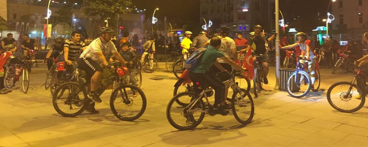 Bolu’da günlerdir devam eden teröre lanet protestoları devam ederken, Tabiatın Kalbi Bolu Bisiklet Amatörleri Derneği (TABİAD) tarafından sessiz protesto yapıldı. Derneğe bağlı 50 bisikletçi, bisikletlerini Türk bayraklarıyla süsleyerek İzzet Baysal caddesinden başladıkları sessiz protesto da ne slogan ne de zil kullandılar. Vatandaşların alkışlarla destek verdiği bisikletçiler Bolu Valiliği önünde protestolarına son verdiler.