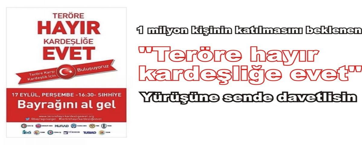 Koçak yaptığı davette "Son günlerde artan terör olaylarına milletçe tepkimizi koymak için Başkent Ankara'da Konfederasyonumuzun da içinde bulunduğu STK'ların düzenleyeceği ve yaklaşık 1 milyon kişinin katılmasını beklediğimiz yürüyüşe vatanını, bayrağını, milletini seven herkesi bekliyoruz. Yürüyüş için 17 Eylül Perşembe Saat 12:00'da Siteler Cami önünden araç kaldırılacaktır. Katılmak isteyenlerin konfederasyonumuza bağlı sendikaların başkan ve yöneticileriyle iletişime geçmeleri gerekmektedir" dedi.