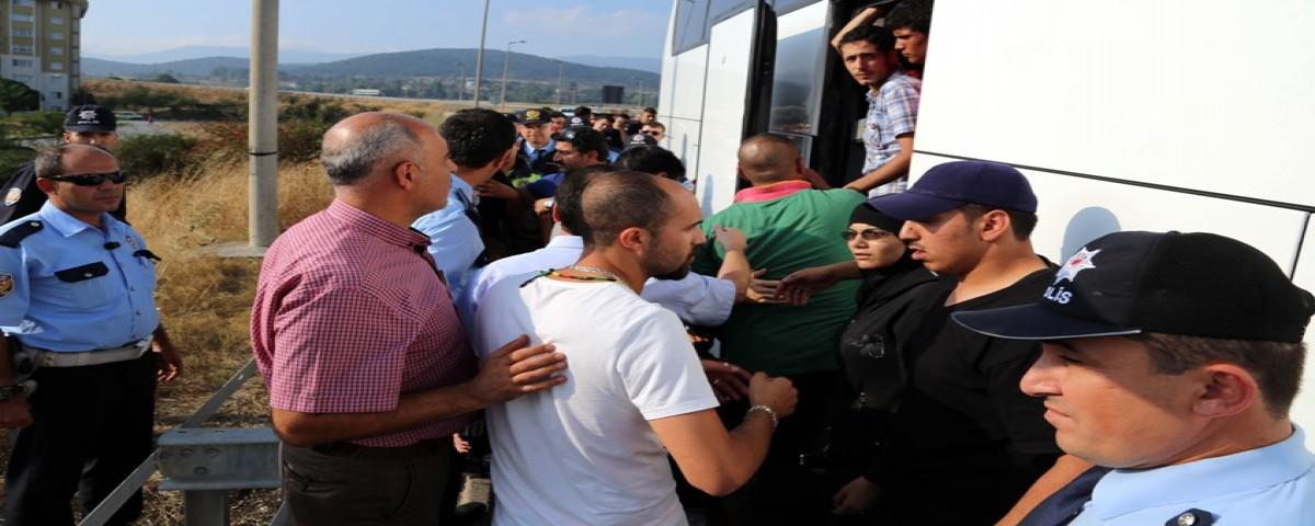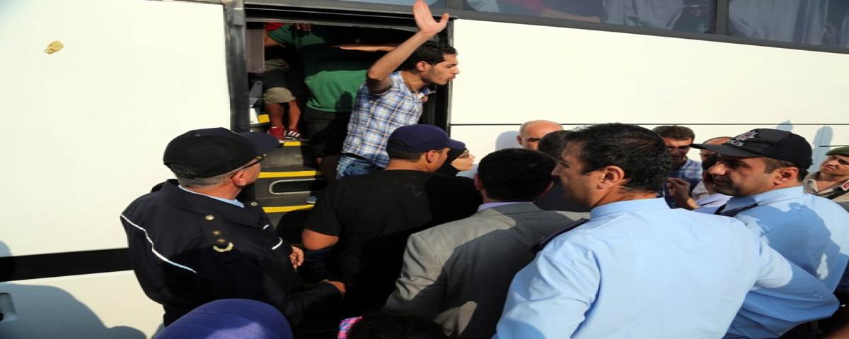 Burada, güvenlik güçleri ile otobüsten inen bazı sığınmacılar arasında gerginlik yaşandı. Bir sığınmacı, araca binmemekte direnince polis ekipleri tarafından kelepçelendi. Bunun üzerine sığınmacının eşi, kocasının bırakılmasını ve İstanbul'a dönmelerine izin verilmesini istedi. Polis ekipleri, otobüse bindirdiği kişinin kelepçesini açtı.