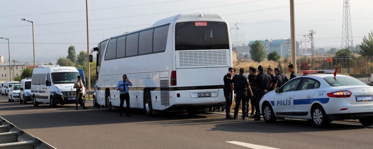 Kendi imkanlarıyla tekrar İstanbul'a dönmek isteyenlerin otobüsü kent merkezine gitmeye zorladığı bilgisini alan polis ve jandarma ekipleri, gişelerde geniş güvenlik önlemi alarak aracı durdurdu.