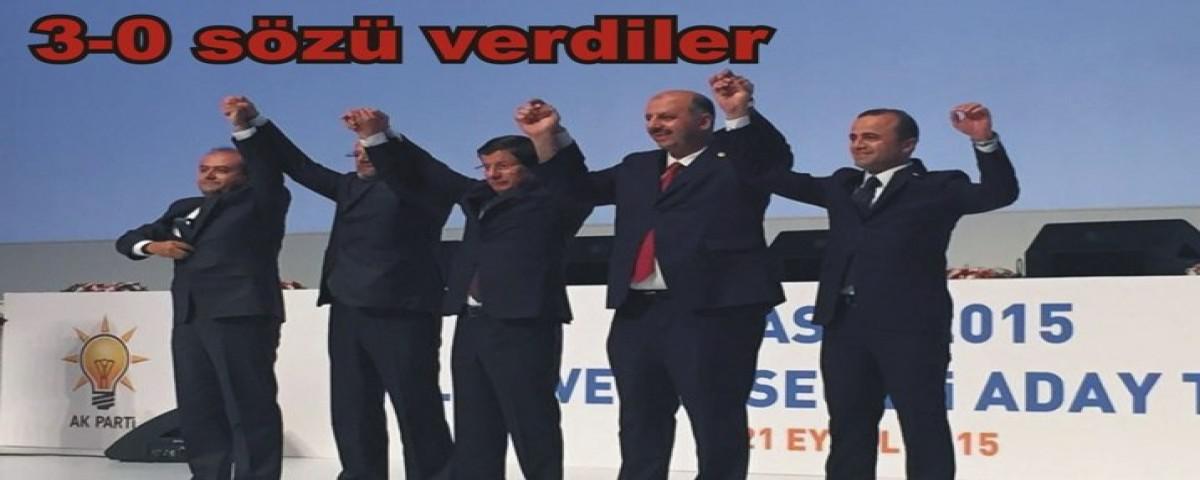 Ak Parti Bolu 1. Sıra Milletvekili Adayı Ali Ercoşkun, 2. Sıra Milletvekili Adayı Fehmü Küpçü ve 3. Sıra Milletvekili Adayı Fatih Metin, Ak Parti Genel Merkezi tarafından organize edilen aday tanıtım toplantısında yer aldı. Sabah saatlerinde başlayan toplantıda Ak Parti Genel Başkanı ve Başbakan Ahmet Davutoğlu, toplantının başında bir konuşma yaptı. Ak Parti seçimde kullanacağı “Haydi Bismillah” adlı şarkının da tanıtımının yapıldığı toplantıda, Davutoğlu’nun konuşmasının ardından milletvekili adaylarını tek tek tanıttı. Sıra Bolu’nun Ak Parti Milletvekili Adaylarına gelince Ercoşkun, Küpçü ve Metin sahneye çıktı. Davutoğlu ile tokalaşan adaylar Bolu’da tekrardan 3-0 yapmak için çalışacaklarının sözünü verdiler.