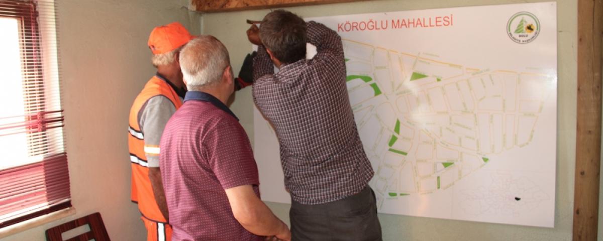 Mahalle muhtarları ile Bolu Belediyesi arasındaki iletişimin daha güçlü olması ve dolayısıyla mahallelerdeki sorunlara bir an önce müdahale edilebilmesi amacıyla belediye bünyesinde kurulan Muhtarlık İşleri Müdürlüğü, muhtarlık binalarına asılmak üzere mahalle muhtarlarına ilan panosu ve mahalle haritası hediye etti.