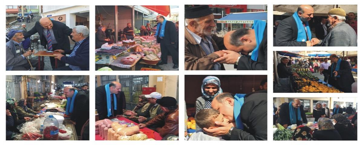 AK Parti Milletvekili 1’inci Sıra Adayı Ali Ercoşkun, 1 Kasım’a sayılı günler kala seçim çalışmalarını Bolu Halk Pazarında sürdürdü. Parti teşkilatları ile birlikte vatandaşlarla bir araya gelen Ercoşkun, Pazar alışverişi yapan vatandaşlara ve esnaflara AK Parti Seçim Beyannamesi’ni tek tek anlattı.