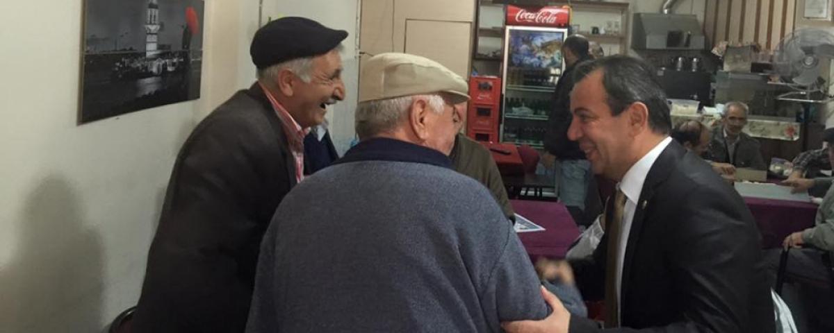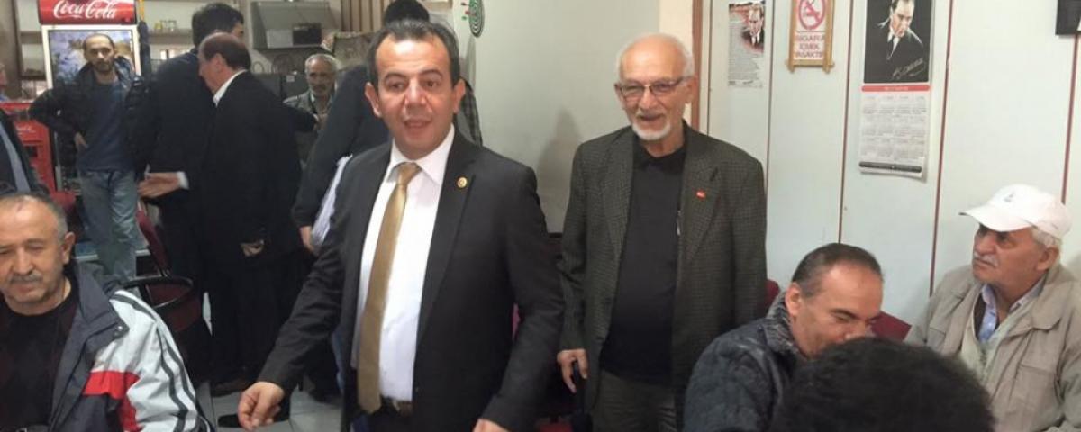 Tanju ÖZCAN yaptığı ziyaretler de şunları söyledi.”7 Haziran da geldik anlattık, ‘Emekliye 2 maaş ikramiye vereceğiz,Aşgari Ücreti 1500 TL’ye çıkartacağız’ dedik, ‘taşeron işçilerini kadroya alacağız’ dedik, ‘köylümüze ucuz mazot vereceğiz’ dedik. Ne dediler ozaman Bu CHP oturduğu yerden atıp tutuyor, dediler. Baktılar oylar düşmeye başladı. 1 maaş ikramiyeyi kabul ettiler, asgari ücreti 1300 TL.ye çıkartmayıda kabul ettiler. Oyları biraz dahadüşerse emekliye 3 maaş ikramiye deverirler.” diyerek ekledi “Öyle görünüyor ki Maliye Bakanı oyunu bize verecek. Söz verdi. Bunlar yapılamayacak şeyler değil . Bütün bu vaatlerimizin projelerimizin hesabını kitabını yaparak gerçekleştirdik.Birilerini dediği gibi atıp tutmadık. Demek ki sıkışınca kaynağı buluyorlar. Kaynak var çünkü.”