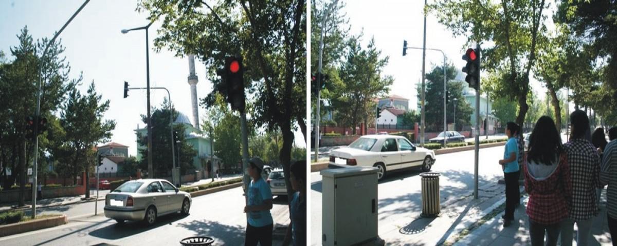 Esentepe Ortaokulu’nun çıkışında yer alan trafik işaretlerinde okul giriş ve çıkış saatlerinde öğrencilerin daha sağlıklı hareket etmeleri için trafik işaretleri konuldu. Öğrencilerin bastığı butondan sonra yeşilden kırmızıya geçen renkte durması gereken sürücüler yaklaşık 60-80 kilometre hızla geçtiği görüldü. Kırmızı ışığı son anda fark eden sürücüler ise, geçeyim mi durayım mı diye tereddüt ediyor.