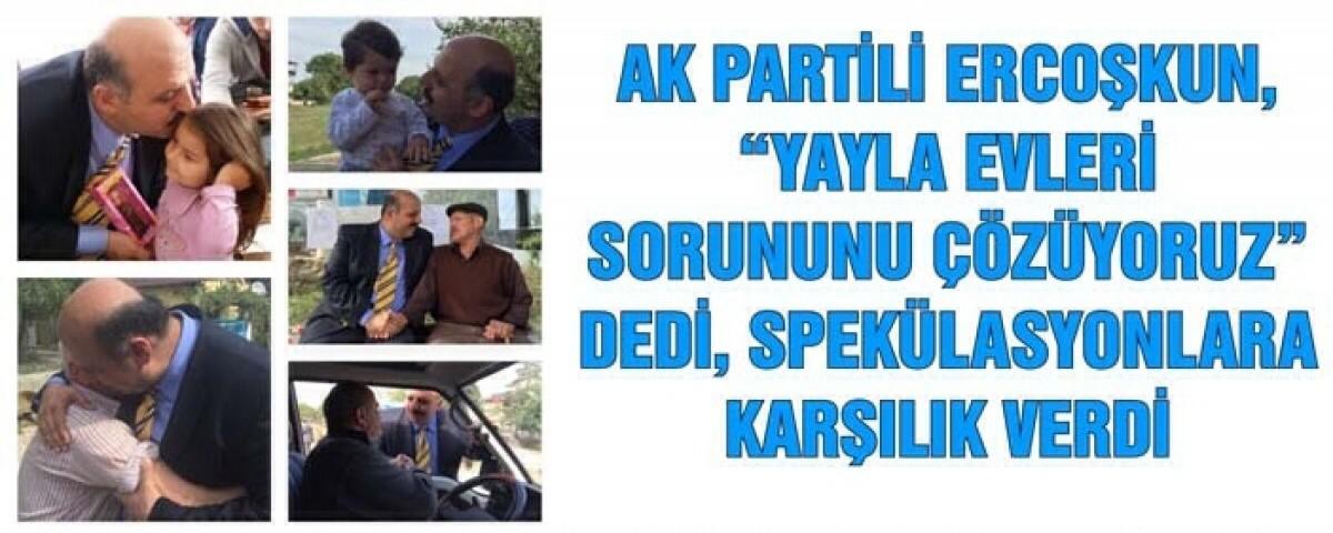 Ercoşkun, basın mensuplarına seçim çalışmaları hakkında açıklama yapmayı da ihal etmedi. Bolu’da çok sayıda vatandaşı yakından ilgilendiren ve Bolu eski Valisi Ahmet Zahteroğulları döneminde yıkımlarla ülke çapında gündeme gelen yayla evi sorununa değindi.