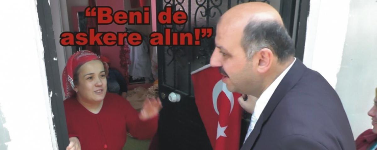 Engelli kadın, yaptığı konuşmada, “Cumhurbaşkanımıza, Başbakanımıza da söylediklerimi iletin. Ülkemizi karıştırmak, birlik ve beraberliğimizi bozmak isteyenlere fırsat vermeyeceğiz. Gerekirse bizi de alın askere. Yeter ki evlatlarımız ölmesin! Ne gerekirse yapmaya hazırım” dedi.