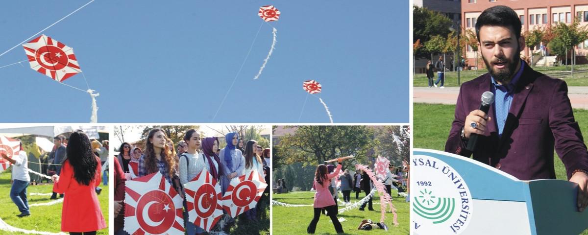 Üniversite öğrencileri, konuşmanın ardından, üzerinde Türk Bayrağı bulunan uçurtmaları uçurdu. Uçurtmaların havalanmasıyla gökyüzü kırmızı-beyaza büründü.AA