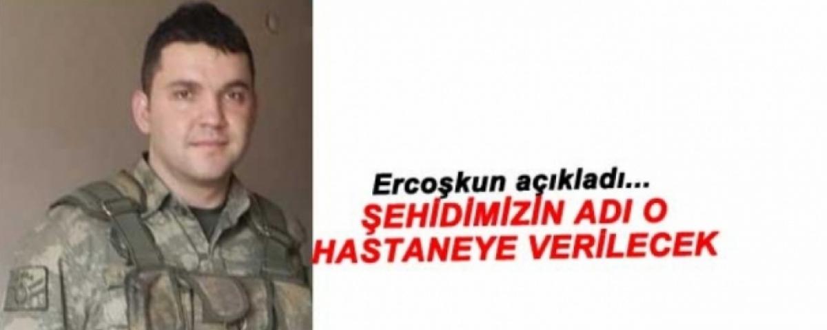 Hakkari'nin Şemdinli ilçesinde şehit edilen uzman çavuş Ziya Sarpkaya'nın isminin ilçede kurulacak bir hastaneye verileceğini söyleyen Ali Ercoşkun, "Göynük'e yeni bir hastane kazandıracağız. TOKİ Konutları'nı eksikliklere rağmen devralmıştık ama hastanede öyle olmayacak. Hastanemize eksiksiz sahip olmak istiyoruz. Bu yüzden sizlerden biraz süre istiyoruz. Şehidimiz Ziya Sarpkaya'nın ismini de bu yeni hastanemize vereceğiz" dedi. Haber Merkezi