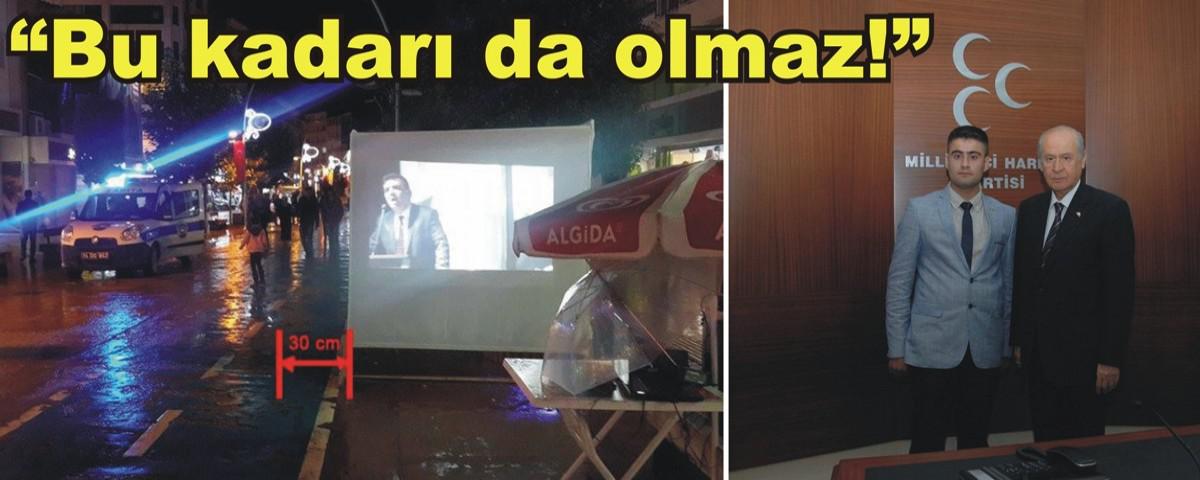 “Milliyetçi Hareket Partisi olarak 1 Kasım seçimleri nedeniyle yapmış olduğumuz siyasi çalışmalarımız, Bolu Belediyesi’ne bağlı Zabıta ekipleri tarafından sürekli engellenmek isteniyor. MHP olarak Parti binamız önünde Seçim kurulundan izin alarak kurduğumuz standımız da ki sinevizyon gösterimiz ve standımız, zabıta ekipleri tarafından adeta sürekli taciz edilerek, partililerimiz rahatsız ediliyor. Gelen zabıtalar, izin belgesini 50 kere okuyarak nerede nasıl bir açık buluruz da engel oluruz zihniyetiyle partimizi ve partililerimizi taciz ediyorlar. Zabıta arabasını standımızın yanına çekerek, organizasyonlarımızı bozmak için ellerinden gelen herşeyi yapıyorlar. Buradan belediye yönetiminde yer alan, oturduğu koltuğun ağırlığını kaldıramayan şahsiyetleri uyarıyoruz; yaşanacak olası tatsızlıkların sorumlusu kendileri olacaktır. Bu kadarı da olmaz!