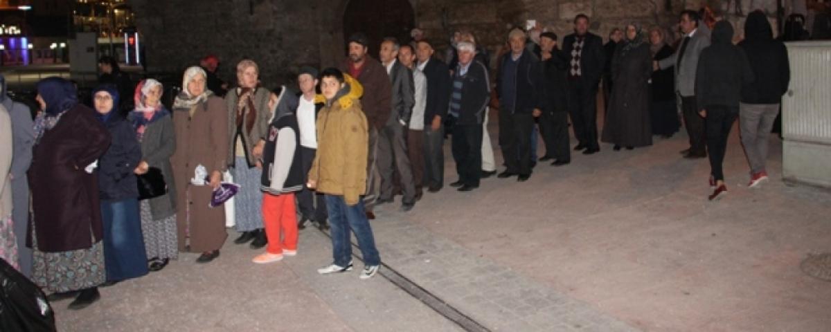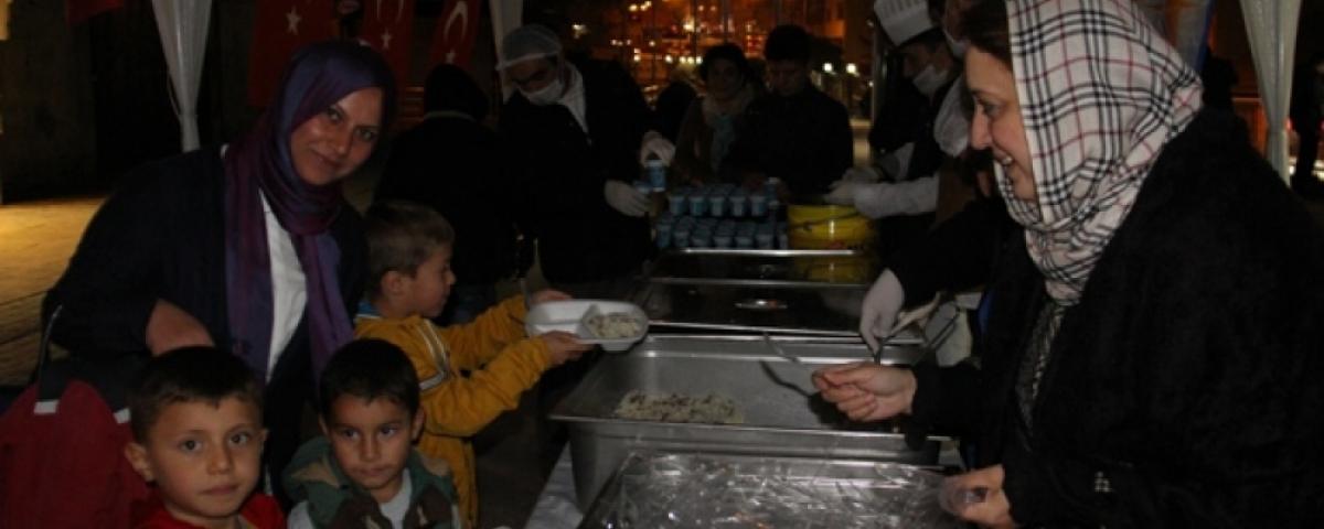 Programın ardından camiden çıkanlara etli pilav, ayran ve tatlı ikramında bulundu. Bu esnada vatandaşlar camii önünde uzun kuyruk oluşturdu. Kadın Kolları Başkanı Arzu Aydın, Milletvekili Adayı Ali Ercoşkun ve Belediye Başkanı Alaadin Yılmaz tarafından vatandaşlara ikram edilen bin kişilik yemek kısa sürede tükendi.