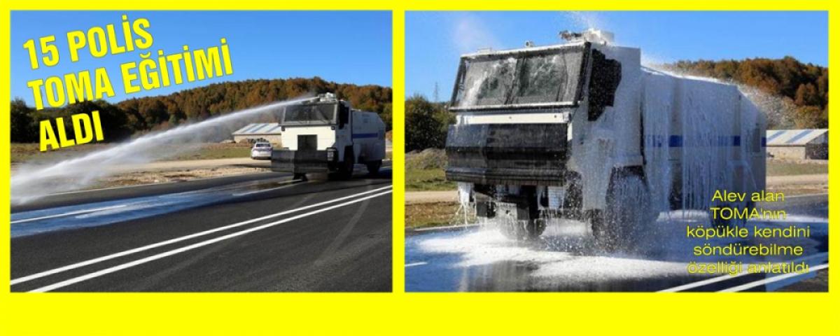 Polislerin toplumsal olaylara müdahale sırasında daha profesyonel hareket etmelerini sağlamak amacıyla verildiği belirtilen eğitimde, TOMA'yla sürüşler yapıldı, belirlenen hedeflere de araçla su sıkıldı.