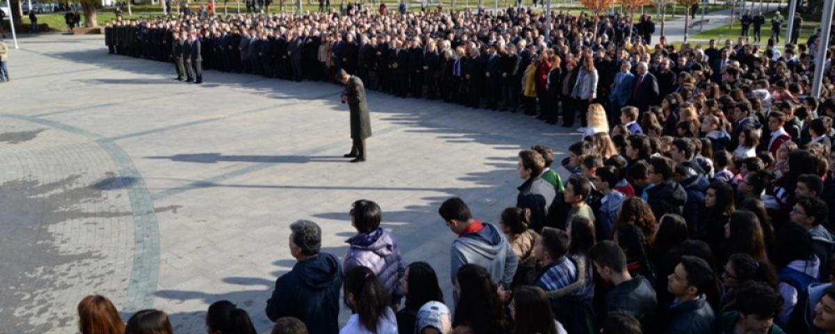 Çelenklerin sunumunun ardından saat 09.05 geçe siren sesleri eşliğinde 2 dakikalık saygı duruşunda bulunarak İstiklal Marşı okundu. Tören sırasında bayraklar yarıya indirildi.