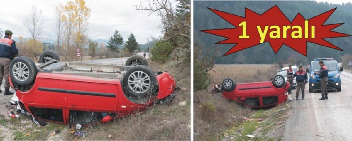 Alınan bilgiye göre, Bolu'dan Mudurnu yönüne giden Benay Kurt idaresindeki 41 UZ 492 plakalı otomobil, sürücüsünün direksiyon hakimiyetini kaybetmesi sonucu Yazılar köyü mevkisinde yoldan çıkarak takla attı.
