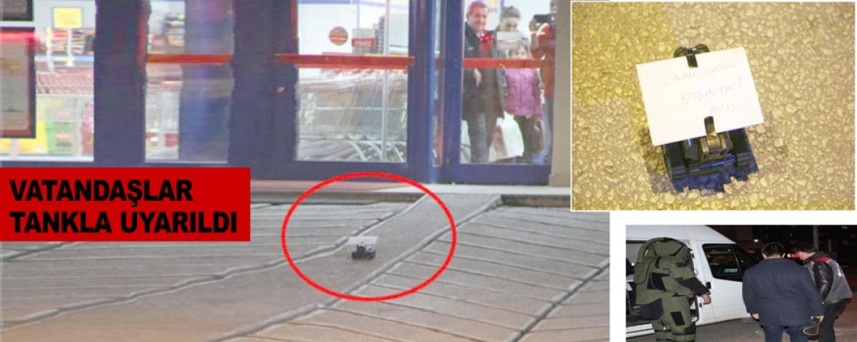 Bomba imha uzmanı, şüpheli poşetin yakınında bulunan bir marketin camından olayı izleyen vatandaşları uyarmak için uzaktan kumandalı bir oyuncak tankı, üzerine "Cam önünü boşaltın, polis" yazarak marketin önüne gönderdi. Yazıyı gören vatandaşlar camın önünden uzaklaştı.