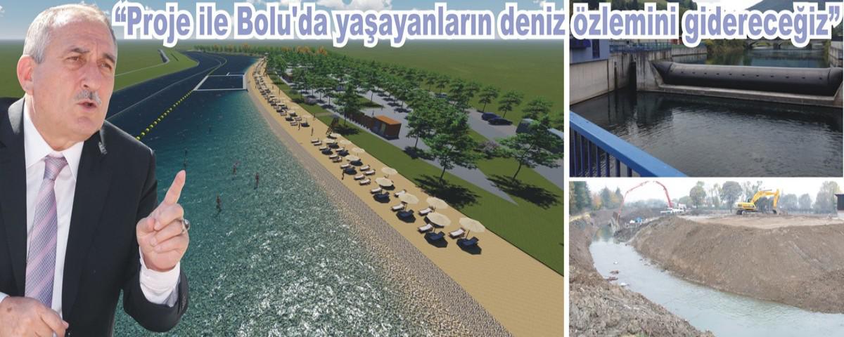 Bolu Büyüksu Deresi'nde hayata geçirilecek projeyle, derenin 1 kilometrelik kısmı, 100 metre genişliğine varan bir gölet haline getirilerek, deniz kumuyla yapay bir plaj oluşturulacak. Göletteki suyun yüksekliği yaz aylarında lastik savak ile 2,5 metreye çıkartılacak, kış aylarında ise lastik savak indirilerek suyun dere üzerinde akması sağlanacak.