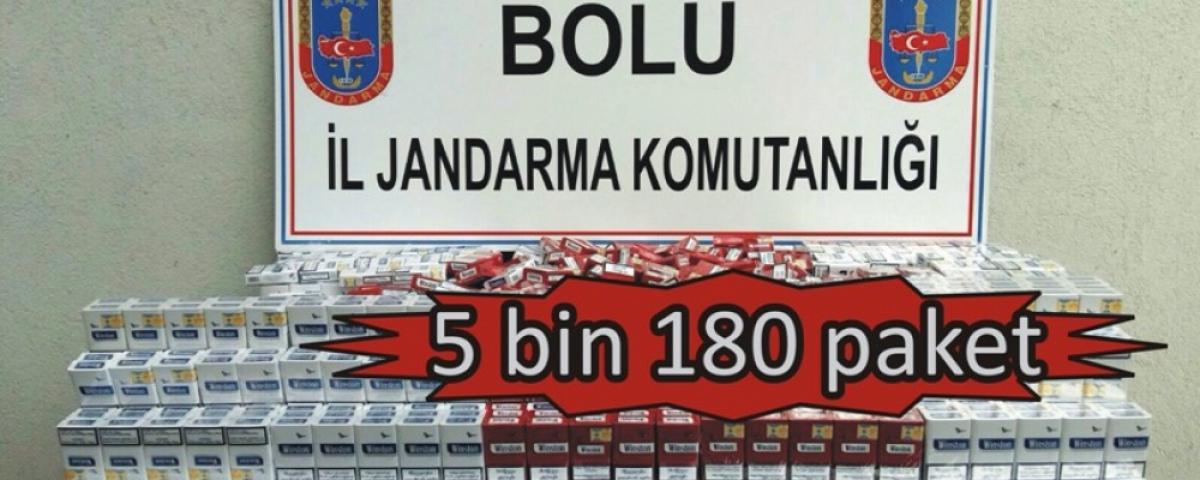 Bolu Valiliğinden yapılan yazılı açıklamada, jandarma ekipleri tarafından yapılan yol kontrollerinde 2 ayrı firmaya ait yolcu otobüsünde yapılan aramalarda 5 bin 180 paket gümrük kaçağı sigaranın ele geçirildiği belirtildi.