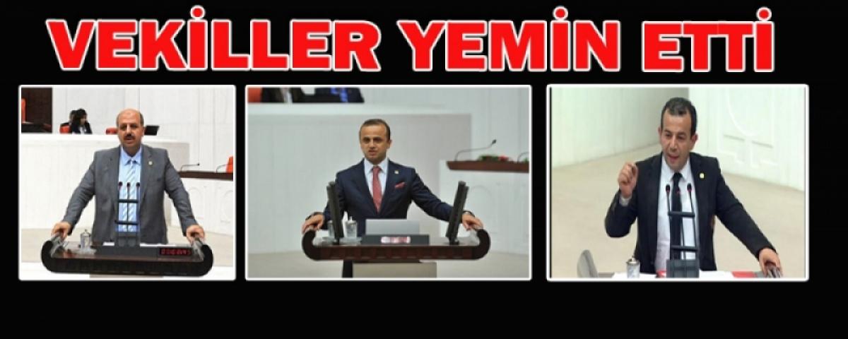 Ardından milletvekilleri yemin etmeye başladı. Genel Kurul'da önce engelli milletvekilleri yemin etti. Milletvekilleri, temsil ettikleri şehirlerin alfabetik sırasına göre kürsüye gelerek yemin etti. Sıra Bolu’ya geldiğinde Bolu’nun 3 vekili sırayla kürsüye çıkıp yemin etti. Saat 17.15’te ilk kürsü alan AK Parti Bolu Milletvekili Ali Ercoşkun’u sırasıyla AK parti Bolu Milletvekili Fehmi Küpçü ve CHP Bolu Milletvekili Tanju Özcan takip etti.