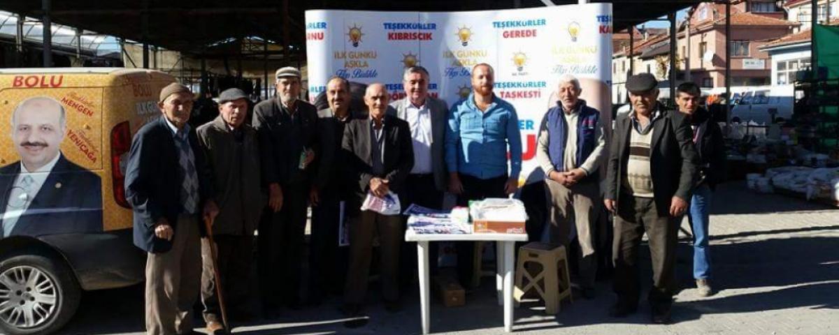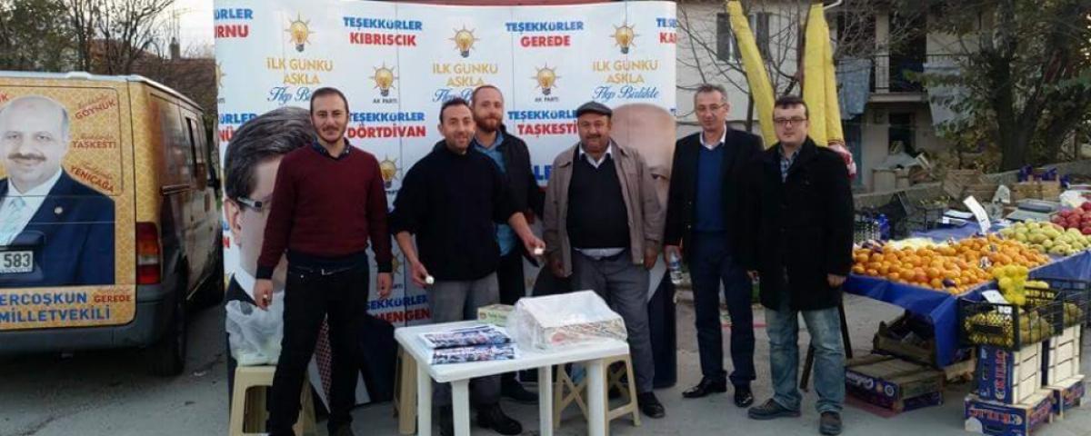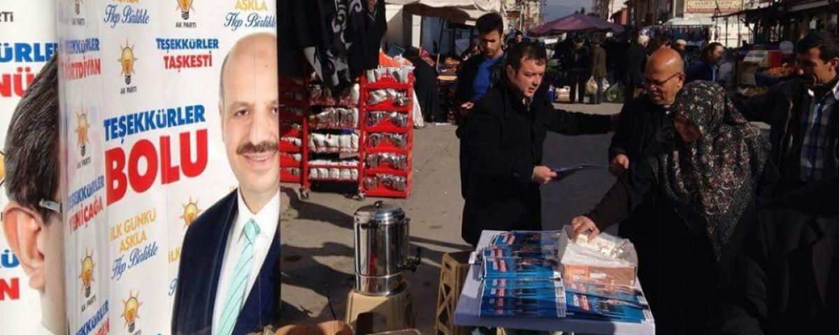 Ziyaret duraklarında, Başbakan Ahmet Davutoğlu ile Milletvekili Ali Ercoşkun'un resimleri yanı sıra tüm seçim noktalarına teşekkür mesajlarının yer verildiği AK Parti logolu stantlar açılıyor. Stantlarda AK Parti iktidarı dönemlerinde Bolu ili genelinde hayata geçirilen yatırımlar ile önümüzdeki dönem gerçekleştirilmesi planlanan projelerin yer aldığı el ilanı ve dergiler vatandaşlara dağıtılıyor.