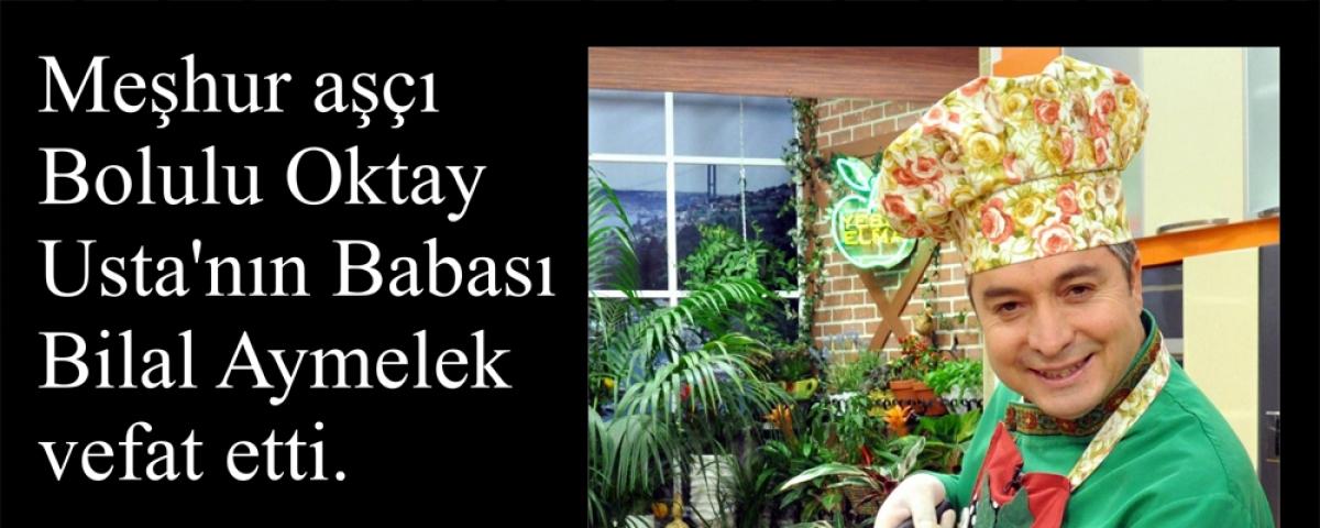 Yaptığı yemek programlarıyla reyting rekorları kıran Bolulu Meşhur Oktay Usta’nın Mengen Gökçesu Beldesi Kadılar köyünde yaşayan babası Bilal Aymelek vefat etti. Bilal Aymelek’in cenazesi dün Mengen Kayışlar Köyü Camii’nde öğle namazına müteakip kılınan cenaze namazının ardından köy mezarlığına defnedildi. Babasının vefat haberini alan Oktay Usta, twitter hesabından babasıyla beraber çekildiği fotoğrafı paylaşarak, "Canım babam Bilal Aymelek hakkın rahmetine kavuştu. Tüm sevenlerinin başı sağolsun. Babacığım canım babamı kaybettik. Rabbim mekanını cennet eylesin. Tüm sevenlerimden dua bekliyorum" yazdı.Haber Merkezi