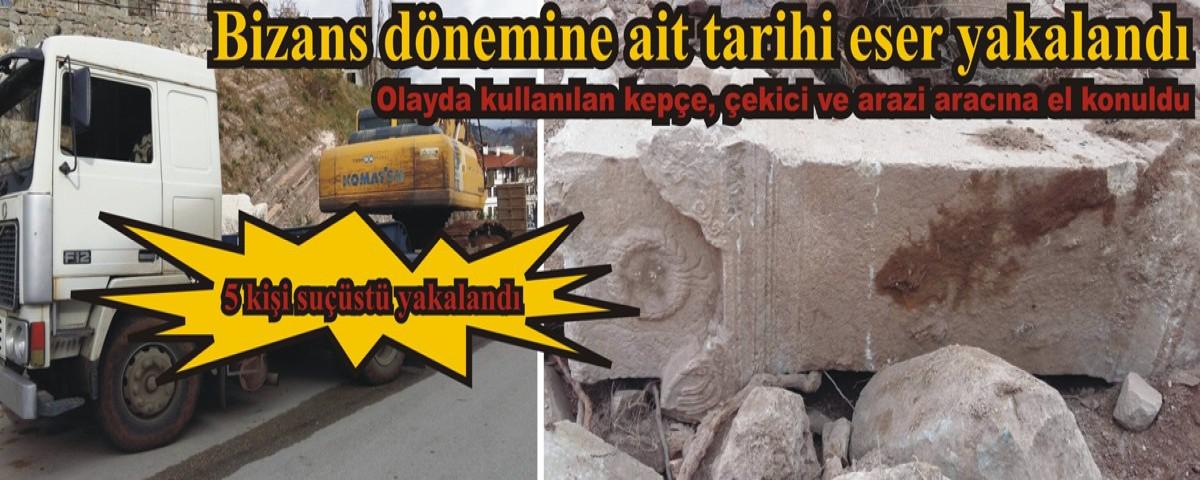 Kontrolde Bizans dönemine ait 2 adet 1.5x0.5 m boyutlarında üzerinde kabartma yazı ve figürler olan sütun, 1 adet sütun başı ele geçirildi. Olayda kullanılan 1 adet kepçe 1 adet çekici ve 1 adet arazi aracı olay yerinde yakalandı. Olayla ilgili Göynük Cumhuriyet Savcılığına bilgi verilerek suçüstü yakalanan 5 şüpheli hakkında gerekli yasal işlemler başlatıldı.