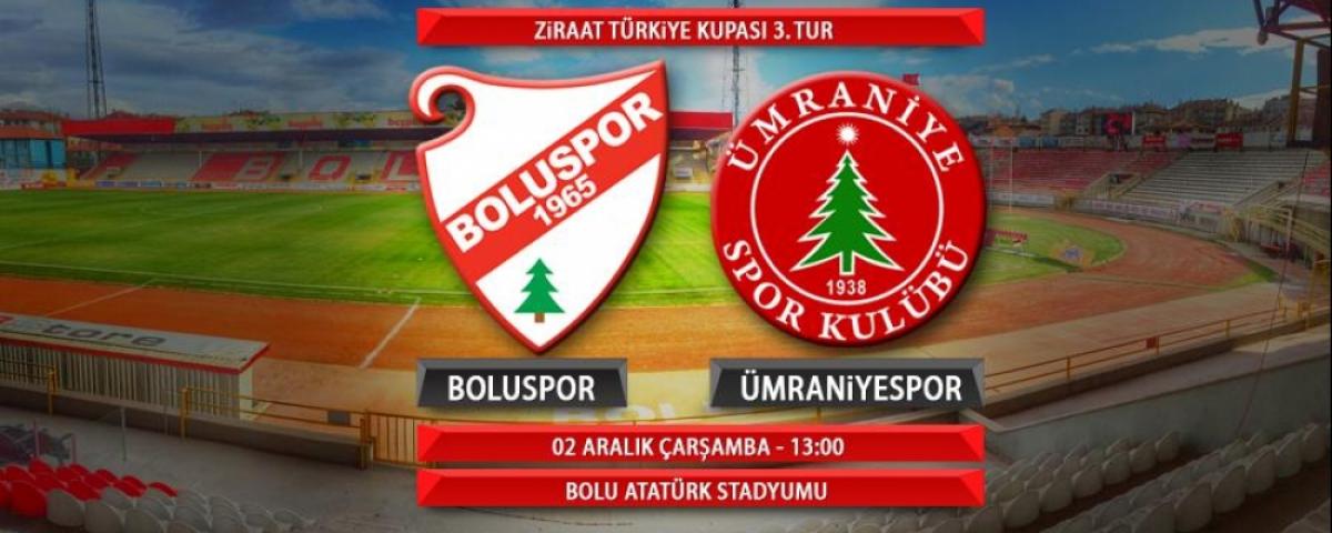 Boluspor Ziraat Türkiye Kupası 3. Eleme Turunda çarşamba günü Bolu Atatürk Stadyumu’nda 3.lig temsilcisi Ümraniyespor ile karşı karşıya gelecek. Karşılaşmanın bilet fiyatları belli olurken biletler PASSOLİG Gişeleri ve passo.com.tr'de satışa çıktı. Sezonluk kombine sahibi taraftarlar maça PASSOLİG Kartları ile giriş yapabilecek. PASSOLİG Kartı bulunmayan taraftarlar ve misafir takım taraftarları, maça kağıt bilet ile giriş yapabilecek.