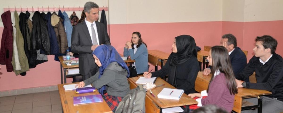 Bolu Valisi Aydın Baruş, öğretmenlerle buluşmanın ardından ise okulda bazı sınıfları gezdi. 12-A, 12-B ve 12-C sınıflarını gezen ve öğrencilerle sohbet eden Vali Baruş, öğrencilere ilk olarak destek kurslarının nasıl geçtiğini ve üniversite sınavlarındaki hedeflerini sordu. Önemli olanın başarmak ve mutlu insan olmaktan geçtiğini öğrencilere aktaran Vali Baruş, öğrencilere kendilerine en yakın olan tercihleri yapmalarını istedi. Kendilerine suni hedefler oluşturmamalarını öğrencilere aktaran Vali Baruş, "Asla sevmediğiniz bir meslek seçip mutsuz olmayın. Tercih edeceğiniz mesleği mutlaka araştırın, mesleği yapanların yanına gidin, zorluklarını ve güzel yanlarını sorun ve öğrenin. Eğer, seçtiğiniz mesleğin zorluklarının üstesinden geleceğinizi biliyorsanız o mesleği seçin. Ailelerinizin meslekler ile ilgili söylediklerini dikkate alın ama son söz yine sizde olacak. Önünüzdeki sınav aylarını iyi değerlendirin. Çünkü bu önünüzdeki süre sizin gelecekteki hayat standardınızı belirleyecek. Gelecekte başkalarının size bir şeyler vermesine muhtaç olmayın, veren siz olun. Siz o kadar başarılı olun ki başkalarına yardımcı olun, destek olun" dedi.