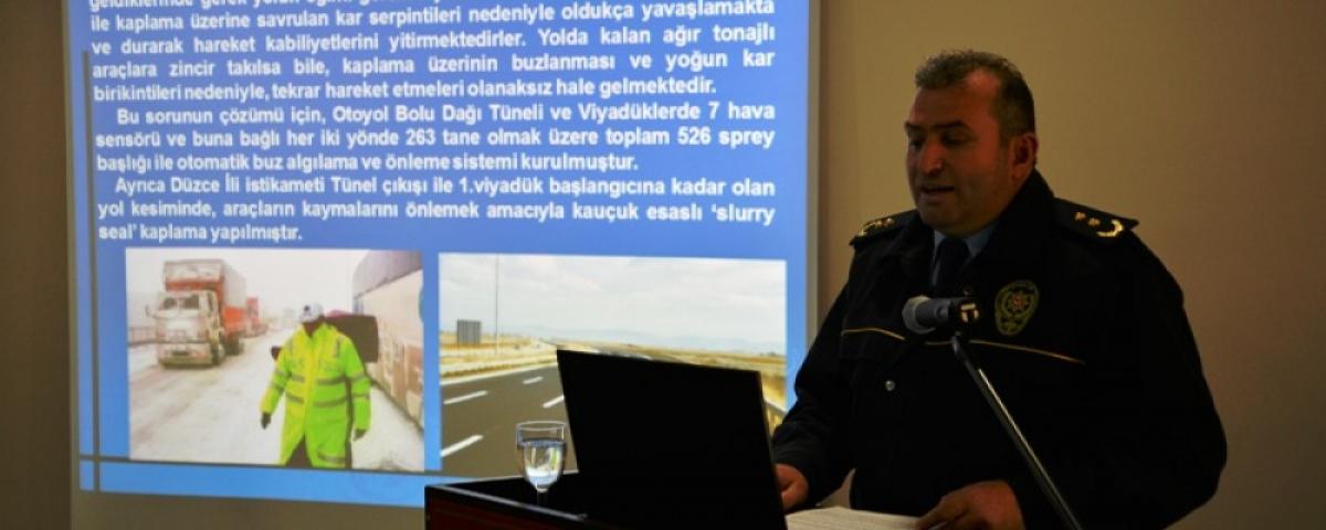 Toplantının açılışında Bolu Emniyet Müdürlüğü Bölge Trafik Şube Müdürü Aydın Aksoy, daha önceki senelerde yapılan çalışmalar, alınan tedbirler, kurumlara düşen görevler ve öneriler ile ilgili sunu eşliğinde bilgiler verdi.