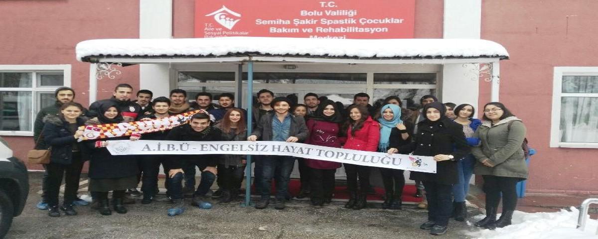 3 Aralık Dünya Engelliler Günü kapsamında yapılan etkinlik çerçevesinde okulu süsleyen öğrenciler çocuklarla birlikte pasta kesip eğlenceli vakit geçirdiler. Konu ile ilgili açıklama yapan AİBÜ Engelsiz Hayat Topluluk Başkanı Ali Hikmet YAŞAR: "Yapacağımız ziyaretin duyurularını yaptığımız günden bu yana çok yoğun bir telefon trafiği yaşadık ve pek çok öğrenci arkadaşımız burayı ziyaret etmek istedi. Ziyaretimiz sadece 3 Aralık gününde değil belirli zamanlarda yine tekrarlanacaktır. Burası çok farklı bir ortam dışardan buradaki çocukların muhtaç olduğu kanısına varılabilir ama bu ziyaretlere asıl bizlerin ihtiyacı var, asıl muhtaç taraf biziz. Bu sebepten ötürü tüm halkımızı buraya davet ediyorum." dedi.