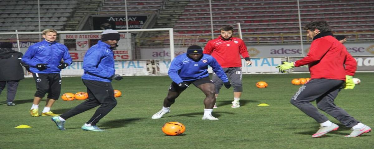 Teknik Direktör Cüneyt Karakuş yönetiminde, Bolu Atatürk Stadyumu'nda gerçekleştirilen antrenmanda, ısınma koşusunun ardından 5'e 2 oynandı. Daha sonra iki grup halinde gol vuruşu ve yan top çalışması yapıldı. Çalışmalar, taktik antrenmanı ile sona erdi.
