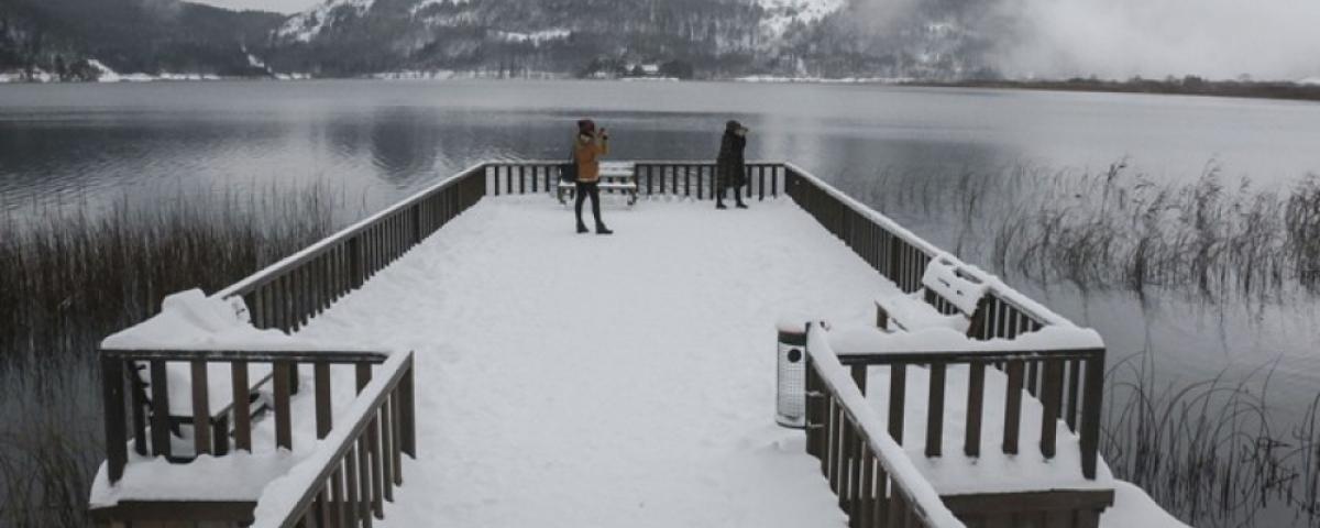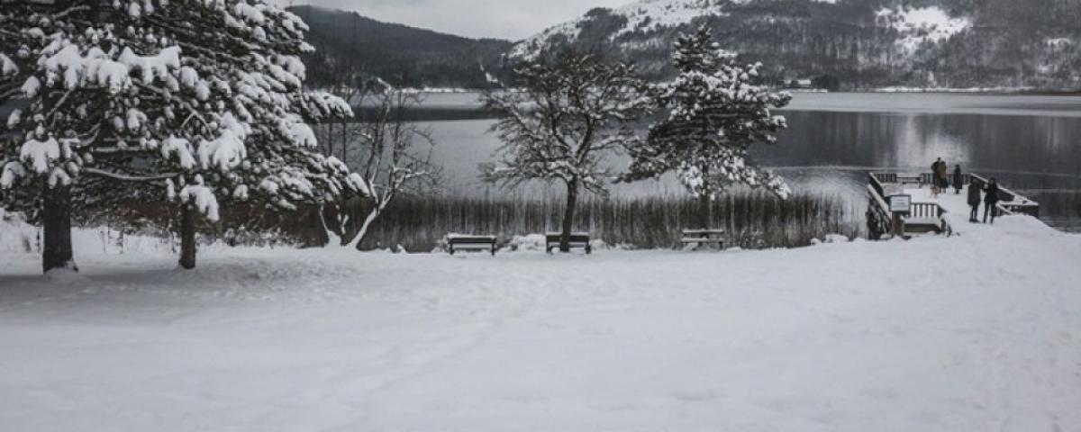 Gölün donan suyu ve çevresindeki ağaçları saran beyaz örtü, kartpostallık manzaralar oluşturdu.