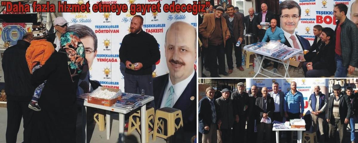 Ziyaret duraklarında, Başbakan Ahmet Davutoğlu ile Milletvekili Ali Ercoşkun'un resimleri yanı sıra tüm seçim noktalarına teşekkür mesajlarının yer verildiği AK Parti logolu stantlar açıldı. Stantlarda AK Parti iktidarı dönemlerinde Bolu ili genelinde hayata geçirilen yatırımlar ile önümüzdeki dönem gerçekleştirilmesi planlanan projelerin yer aldığı el ilanı ve dergiler vatandaşlara dağıtıldı.
