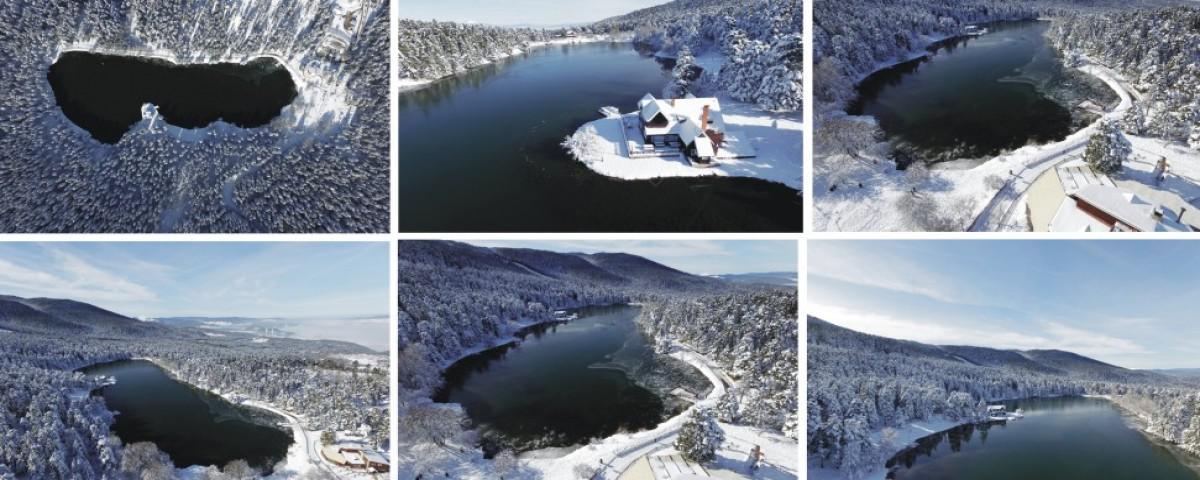 Kartalkaya Kayak Merkezi ile her mevsim ayrı bir güzelliğin yaşandığı Gölcük Tabiat Parkı'nda gökyüzünden çekilen görüntülere eşsiz manzaralar yansıdı.