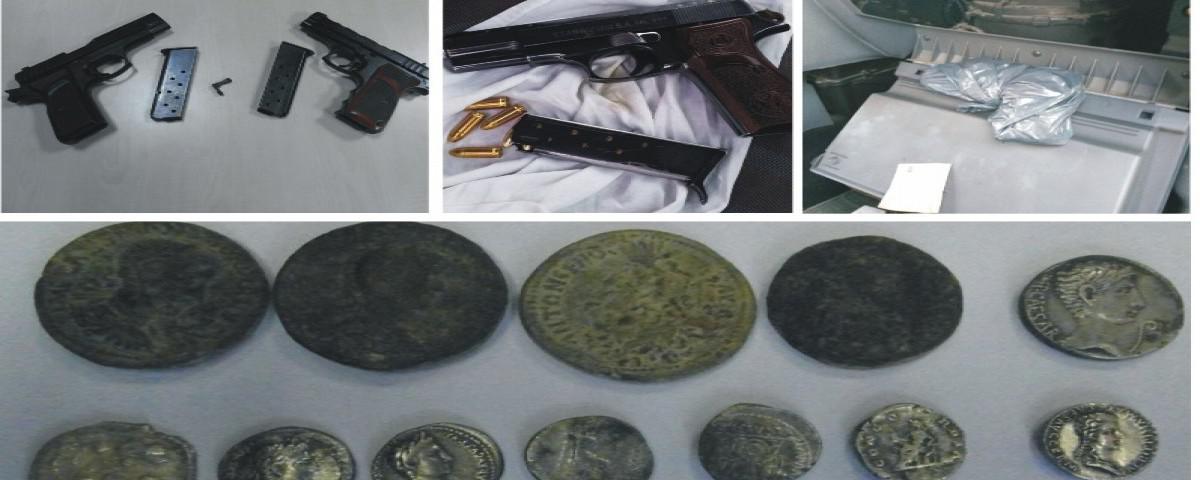 A.Y ve A.A’ nın kullanmış olduğu 06 plakalı araçta bulunan şahısların yapılan üst aramasında A.Y isimli şahıstan 12 adet Roma - Bizans ve Yunan dönemine ait Bronz ve Gümüş sikke ile A.A isimli şahsın üzerinde yapılan aramada ise 10 adet Osmanlı dönemine ait Gümüş sikke yakalandı.