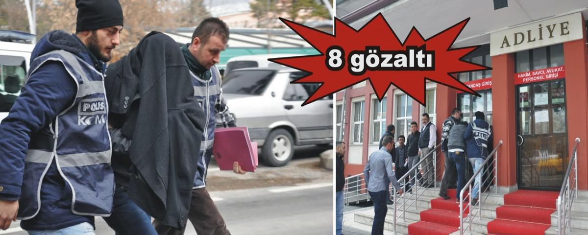 Alınan bilgiye göre, polis ekiplerinin uyuşturucu ve uyarıcı madde ticareti, kullanımı, alımı ve satımının önlenmesine yönelik Cumhuriyet Caddesi ile Kürkçüler Mahallesi'nde yaptığı uygulama kapsamında 8 kişi yakalandı.