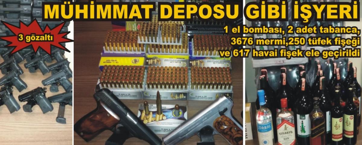 Edinilen bilgiye göre, Bolu Emniyet Müdürlüğü Kaçakçılık ve Organize Suçlarla Mücadele Şubesi ekipleri Gölyüzü Mahallesi’nde bulunan iki tekel satışı yapan işyerine baskın düzenledi. Birinci işyerine yapılan aramada, 1 el bombası, 2 adet tabanca ve bu tabancalara ait 67 adet 7,65 milimetre mermi, 14 kurusıkı tabanca ile bu tabancalara ait 2 bin 924 kurusıkı tabanca mermisi, 682 adet 9 milimetre tabanca mermisi, 3 adet değişik çapta mermi, 250 tüfek fişeği, 617 havai fişek ele geçirildi.