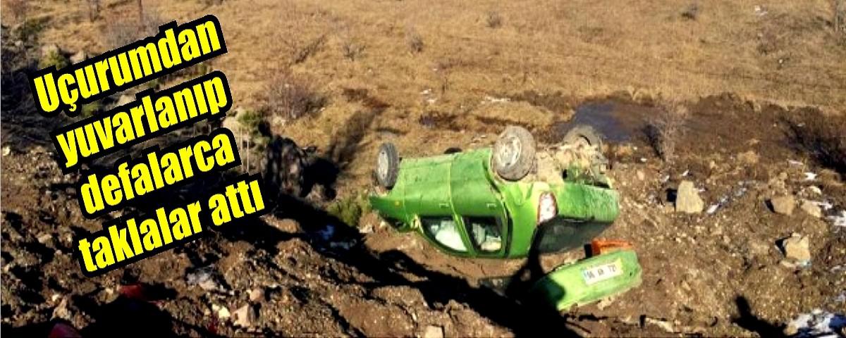 Gerede’nin D-100 karayolu Danişmentler Köyü girişinde meydana gelen trafik kazasında direksiyon hakimiyetini kaybeden sürücü A.T. anayoldan çıkarak uçuruma yuvarlandı. Duruncaya kadar 5 takla attığı tahmin edilen araçta sıkışan yaralı 2 kişi, Gerede Belediyesi İtfaiye Müdürlüğü ekipleri tarafından sıkıştıkları araçtan çıkarıldı.