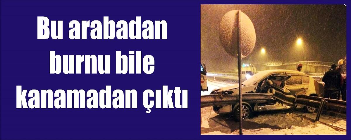 Edinilen bilgiye göre, Kaza akşam saatlerinde meydana geldi. İstanbul’dan Ankara istikametine giden V.Ç. idaresindeki 34 VY plakalı otomobil, Bolu Dağı Tüneli çıkışında kar nedeniyle kayarak yol kenarında ki çelik bariyerlere çarptı. Çarpmanın etkisiyle çelik bariyer adeta bir bıçak gibi sürücü mahalline saplandı. Sürücü kazadan şans eseri yara almadan kurtuldu. Polis ekipleri kazayla ilgili inceleme başlattı.