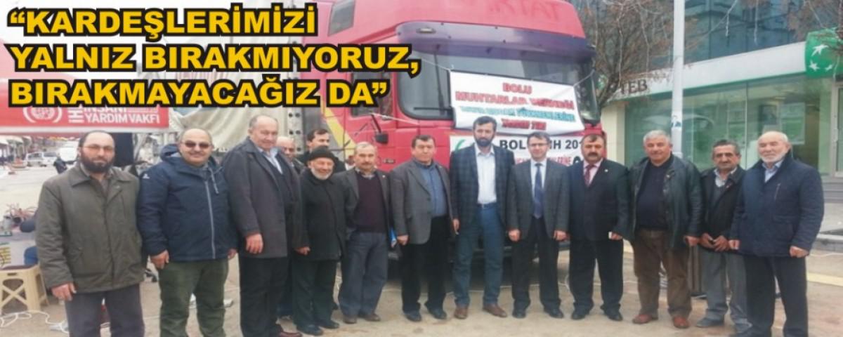 Belediye önünde düzenlenen etkinliğe, İHH gönüllüleri, muhtarlar, daire müdürleri ve vatandaşlar katıldı. Burada bir konuşma yapan İHH Bolu Şube Başkanı Fethi Sarımsakçı, “Zalimlerin karşısında, mazlumların yanında olmak için desteğimiz her geçen gün artmaktadır. Bugün bu tıra katkılarını sunan Muhtarlar Derneğimize teşekkür ediyoruz. Belediyemize teşekkür ediyoruz.” dedi.