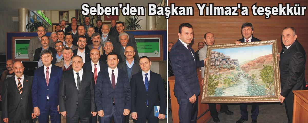 Seben Kaymakamı Osman Sayılır, Seben Belediye Başkanı Süleyman Özbağ, Seben İl Genel Meclis Üyeleri İsmail Akman ve Fehmi Çınar, Seben Köylere Hizmet Götürme Birlik Müdürü Bülent İlhan, Seben Muhtarlar Derneği Başkanı Arif Eser ve 29 Köy Muhtarı, Bolu Belediye Başkanı Alaaddin Yılmaz'a Seben ilçesi ve köylerine Bolu Belediyesi olarak yapmış oldukları desteklerden dolayı teşekkür ziyareti gerçekleştirdi.