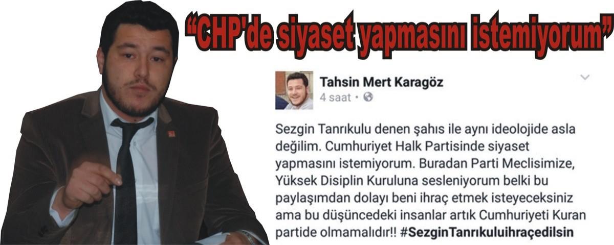 Sosyal medya platformları facebook ve twitter üzerinden eleştirilerini dile getiren CHP Bolu İl Gençlik Kolları Başkanı Tahsin Mert Karagöz’ün sözleri bazı partilileri tarafından da paylaşıldı. Tanrıkulu’na ağır sözlerle yüklenen Karagöz, “Sezgin Tanrıkulu denen şahıs ile aynı ideolojide asla değilim. Cumhuriyet Halk Partisinde siyaset yapmasını istemiyorum. Buradan Parti Meclisimize, Yüksek Disiplin Kuruluna sesleniyorum belki bu paylaşımdan dolayı beni ihraç etmek isteyeceksiniz ama bu düşüncedeki insanlar artık Cumhuriyeti Kuran partide olmamalıdır!” dedi.